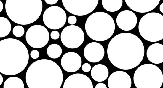 | 3、使用键盘上面的‘[’ 和’]‘ 两个按键,调整笔刷的大小,继续在画布上面绘制更多的圆形点。注意你放置圆点的位置!所有的圆点都不能有所重合,每一圆点周围都有黑色的部分。 |