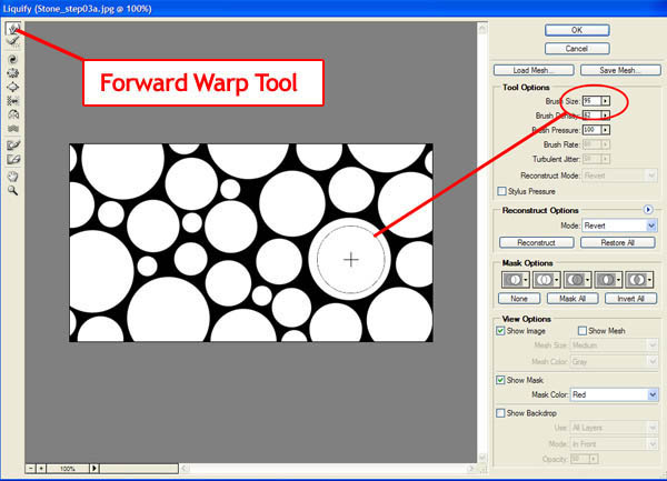 | 4、在主菜单中,点击滤镜>液化。再弹出的窗口中,选择左边工具栏中的向前变形工具。你需要做的是调节右边的笔刷大小选项。我这里选择的是95。 |