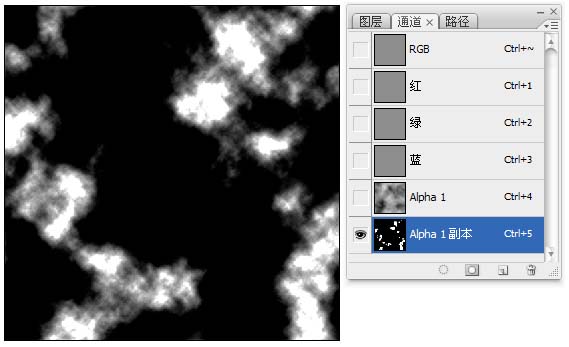 | 1、打开下图所示的墙壁素材,点通道面板,新建Alpha1通道,执行“云彩”滤镜。 |