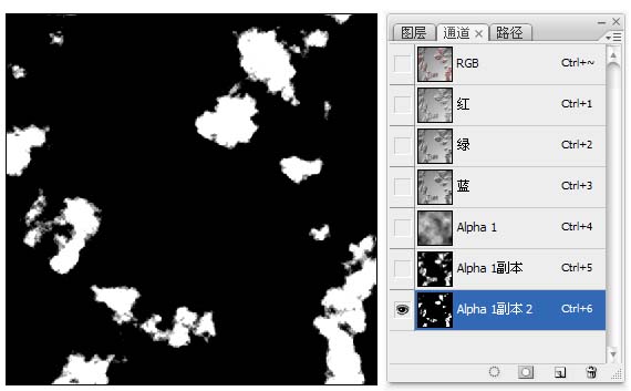 | 2、复制出“Alpha1副本”通道,调整色阶,将对比度增强,执行反相,以获得正确的选区。 |