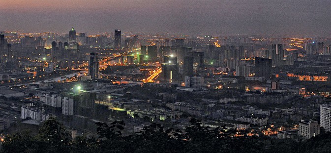 1、我们这里选择的图片是一张夜晚的全景图片。所以首先要对图片进行裁切。截取灯光比较密集,光线比较亮的地方。注意天空的比例尽量小一些。