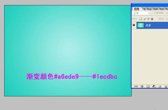 | 1、新建一个画布选择渐变工具(g)然后拉一个径向渐变。#a6ede9——#1ecdbc如图。拉一个底色为了以后文字操作看起来更明显。 |