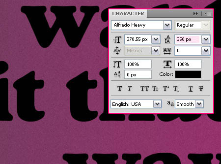 4、创建文本使用黑色。 使用的字体是阿尔弗雷,大小为370px。您可以改变调整行距。 |