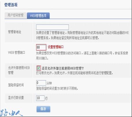二、把系统工具—管理选项—WEB管理选项中是否允许外部主机使用WEB管理勾选并保存,并设置具体的管理端口