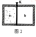 例2.(2010年全国II卷)如图2,一绝热容器被隔板K 隔开a、b两部分。已知a内有一定量的稀薄气体,b内为真空,抽开隔板K后,a内气体进入b,最终达到平衡状态。在此过程中