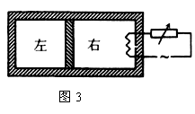 例3.(2009年全国卷II)如图3所示,水平放置的密封气缸内的气体被一竖直隔板分隔为左右两部分,隔板可在气缸内无摩擦滑动,右侧气体内有一电热丝。气缸壁和隔板均绝热。初始时隔板静止,左右两边气体温度相等。现给电热丝提供一微弱电流,通电一段时间后切断电源。当缸内气体再次达到平衡时,与初始状态相比