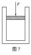 例7.(2010年福建卷)如图7所示,一定质量的理想气体密封在绝热(即与外界不发生热交换)容器中,容器内装有一可以活动的绝热活塞。今对活塞施以一竖直向下的压力F,使活塞缓慢向下移动一段距离后,气体的体积减小。若忽略活塞与容器壁间的摩擦力,则被密封的气体