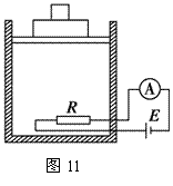 例11.如图11所示,带有活塞的汽缸中封闭一定质量的气体(不考虑分子势能)。将一个半导体热敏电阻置于汽缸中,热敏电阻与汽缸外的电流表和电源相连接。活塞可以自由滑动,活塞上有几块质量不等的小物块,还有准备好的可以往活塞上添加的小物块。下列说法正确的是