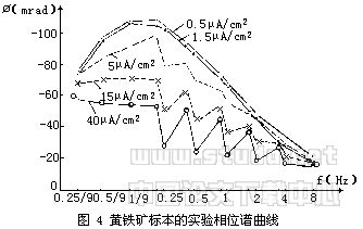 对激电非线性效应,国内外研究多集中于电流密度较大时的情况。何继善教授则独辟蹊径,建立了电流密度较小时矿物—电解质溶液系统的等效电路模型。借助于非线性数学理论,推导出该电路的过电位响应,为研究非线性激电提供了基本的理论指导。在此基础上,分析计算了双频电流作用下该电路的过电位响应,发现了一些特殊的现象,且得到实验结果的证明。图4是黄铁矿标本的实验相位谱曲线。结果表明,在双频电流作用下,各种矿物的激电频谱都将出现锯齿状非线性特征。不同矿物这种特征是不相同的。利用这些差别便可区别不同的矿物,因而可能发展为一种经济的评价激电异常源性质的方法。科学通报(1994,No.5)发表了这一研究成果;地球物理学报亦将发表更全面的研究成果。