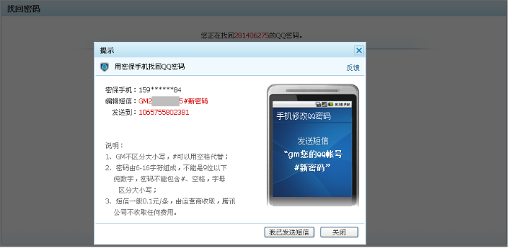 如果您已经设置了密码保护,那么您可以通过选择验证当前可用的密保手段快速找回QQ密码。